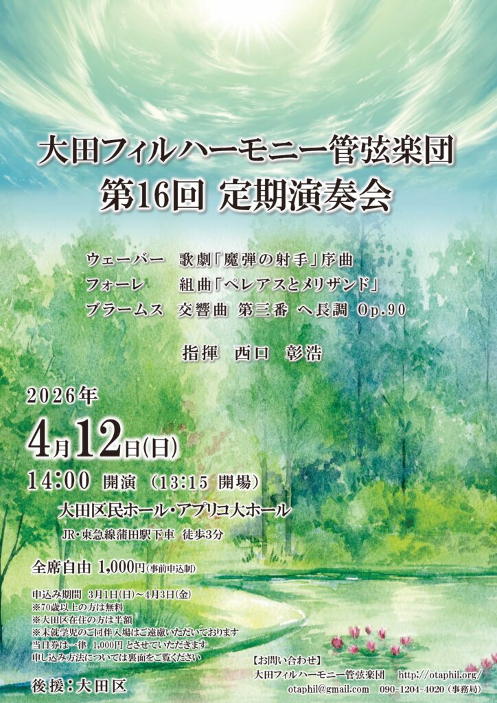 日時:2026年4月12日(日) 14:00開演 (13:15開場) 会場:大田区民ホール・アプリコ 大ホール 入場料:1,000円(70歳以上の方は無料、大田区在住の方は500円)(事前申込制。当日…
